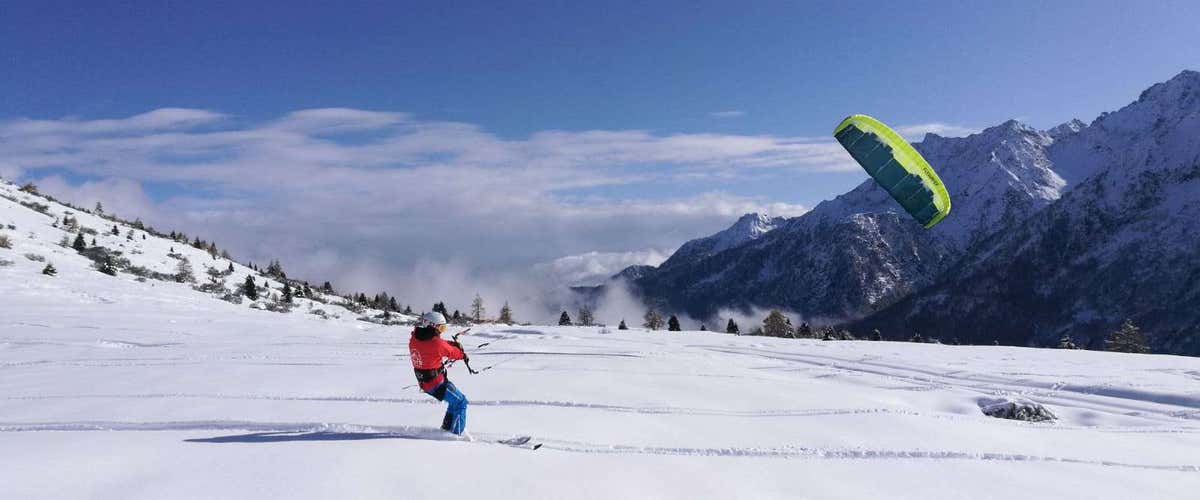 Prova un nuovo sport invernale divertente, adrenalinico e accessibile a tutti. Lo Snowkite è di fatto la versione "su neve" del Kitesurf: spinto dal vento, ti muoverai sul manto bianco con snowboard o sci, controllando l'aquilone per mezzo di una barra.