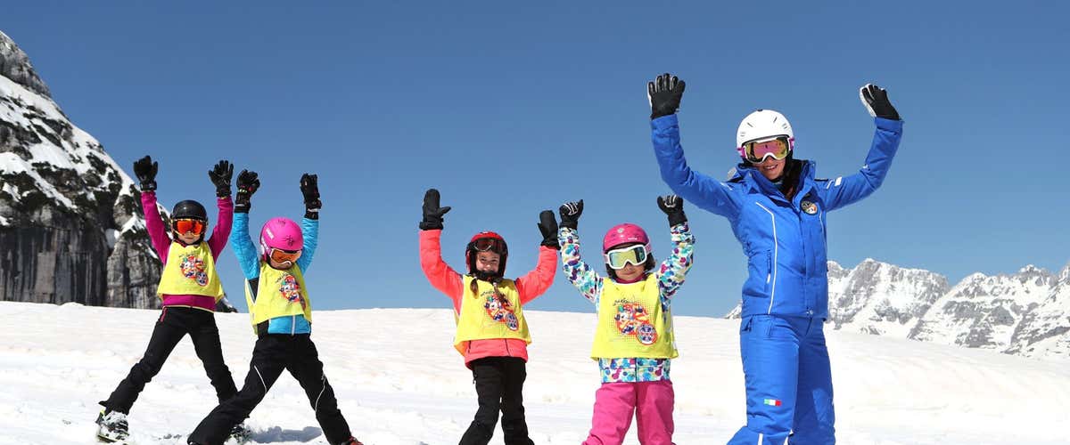 Impara a sciare, divertiti sulla neve e fai nuovi amici partecipando a un corso collettivo di sci ad Andalo, per bambini da 6 a 14 anni.