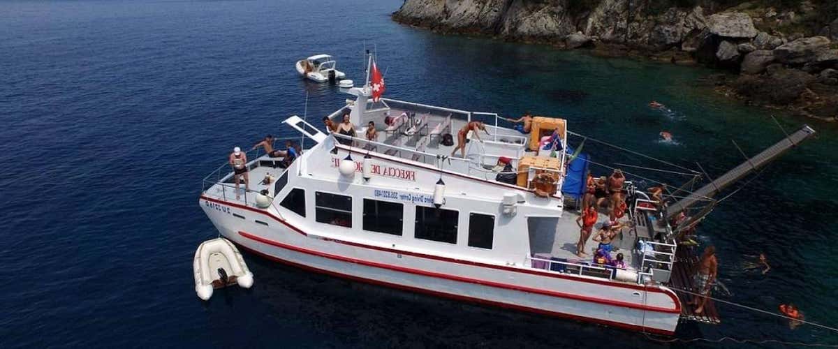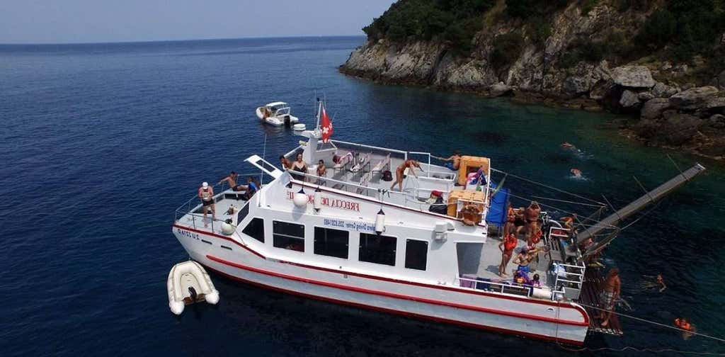 L'escursione si svolge su un catamarano a motore di 15x5,80 dotato di toilette, servizio bar e ampia zona sole.
