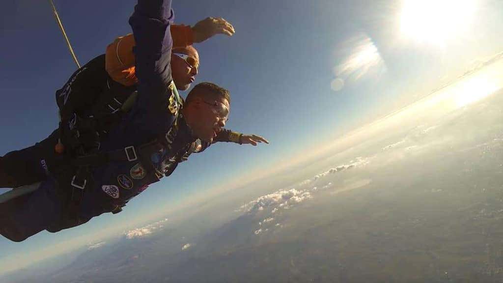 Dopo il minuto di caduta libera, il volo a vela aperta durerà circa 4 minuti. Ti sentirai fluttuare leggero nell'aria e nel silenzio finché toccherai dolcemente terra e ti lascerai andare a un sospiro di sollievo e soddisfazione portandoti a casa un'esperienza indimenticabile.