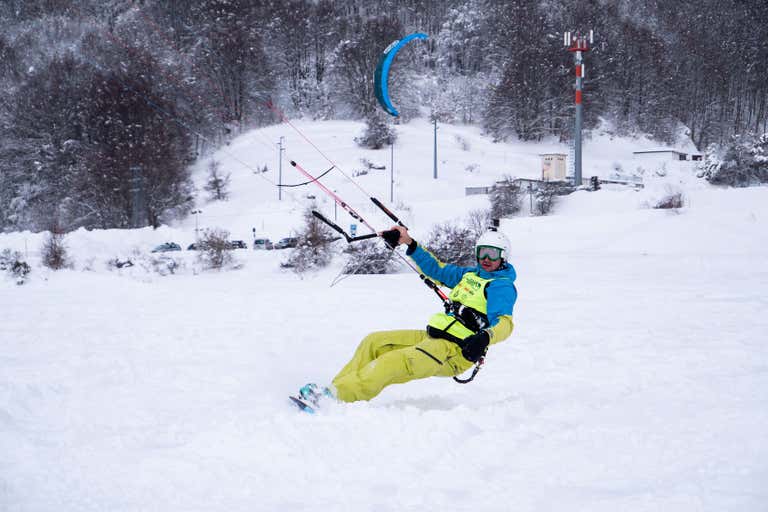 Preparati a scoprire il corrispettivo invernale del kitesurf: a bordo degli sci o della tavola da snowboard, ti lasci trainare sui pendii nevosi dal vento che gonfia l'aquilone.