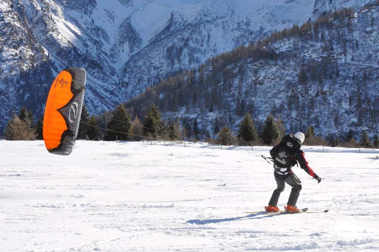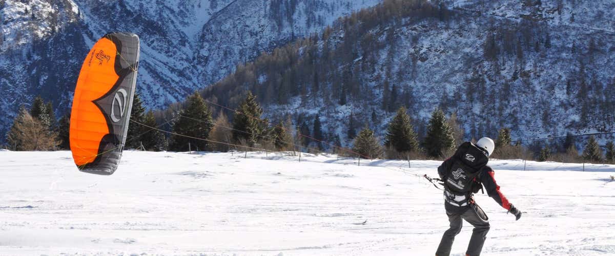 Lo snowkite è, di fatto, la versione invernale del kitesurf: a bordo della tavola o degli sci, impugnerai una barra collegata a un aquilone e ti lascerai trasportare dal vento sulla neve a gran velocità!