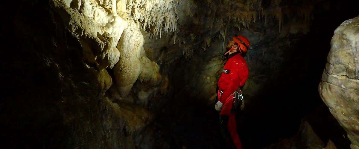 Saremo circondati da spettacolari pareti di stalattiti e stalagmiti e, seguendo il rumore dell'acqua, giungeremo fino a splendide cascate sotterranee che attraverseremo con facilità grazie all'ausilio di una corda.