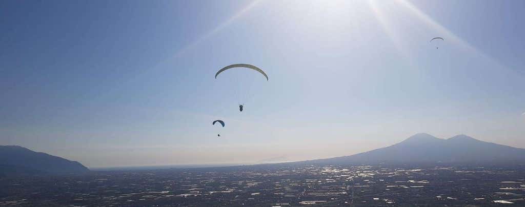 Decollando da Castel San Giorgio, in provincia di Salerno, ammirerai dall'alto la stupefacente natura dell'Appennino Campano, con il Vesuvio all'orizzonte a fare da padrone in tutta la sua maestosità.